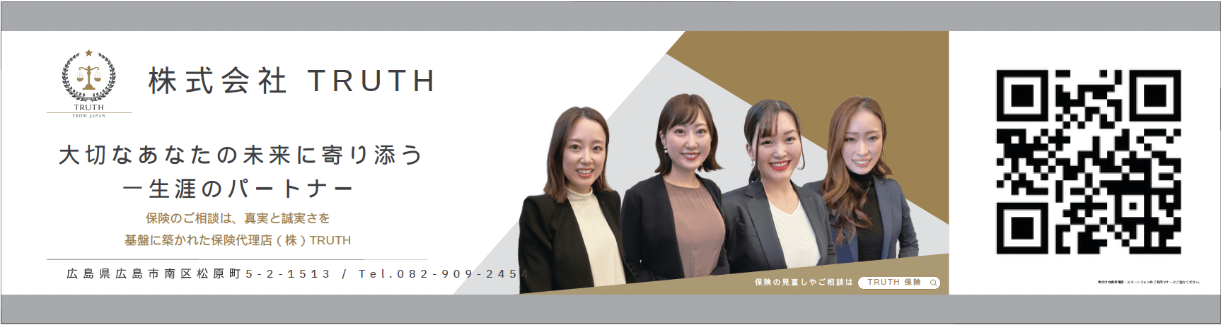 広島電鉄の電車内広告にTRUTHの広告を掲載しました。 安心をお約束するお仕事だからこそ、 多くの方に知っていただき、信頼していただけるよう 公共交通機関への掲載を実施いたしました。